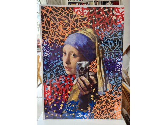 Colourful work by the French street artist ENIGME09. Acrylic paint and spray paint on photo canvas. The dimensions are 36x51 cm. Signed work from 2021. We receive all works by ENIGME09 directly from the artist himself. Comes with a certificate of authenticity issued by the artist.