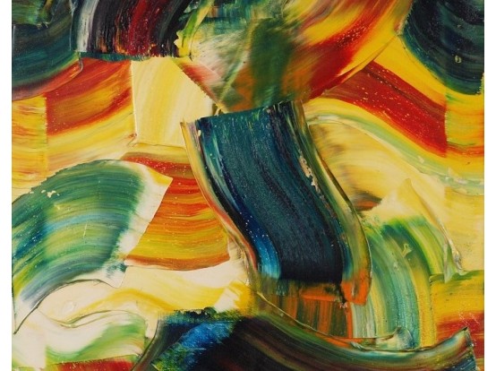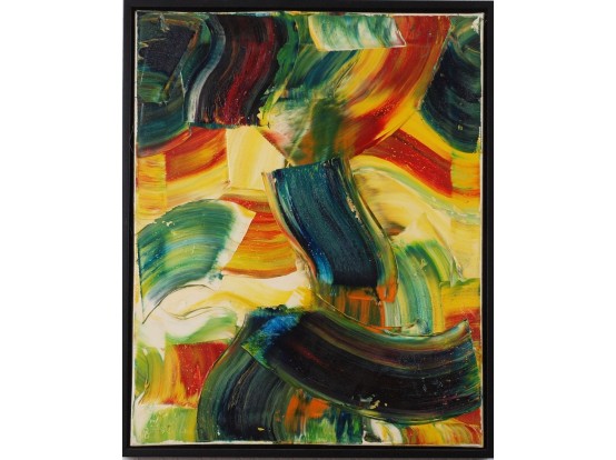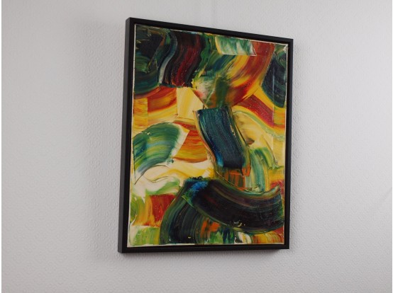 Abstract werk van Jacob Kanbier. Olieverf op doek, gespannen op een houten frame. Ingelijst en voorzien van ophangsysteem. Kan zo aan de muur.