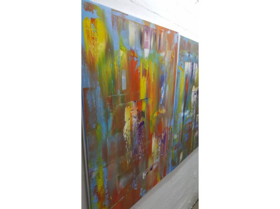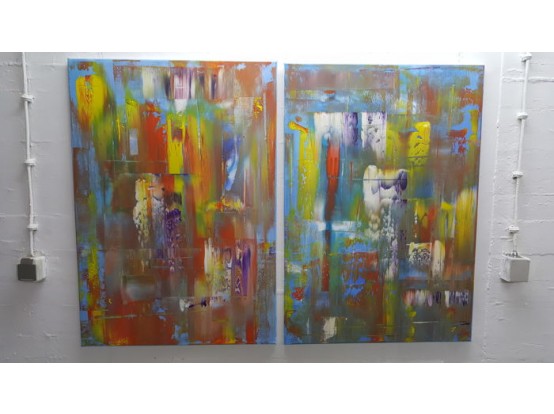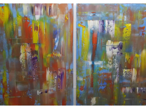 Large diptych by the German artist Parscha Mirghawameddin. The work was made in 2018 and aquired directly from the artist. Technique is acrylic paint on canvas, stretched on a wooden frame. A frame is not required. Dimensions are 2 x 100 x 70 cm, total 100 x 140 cm.