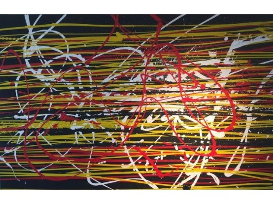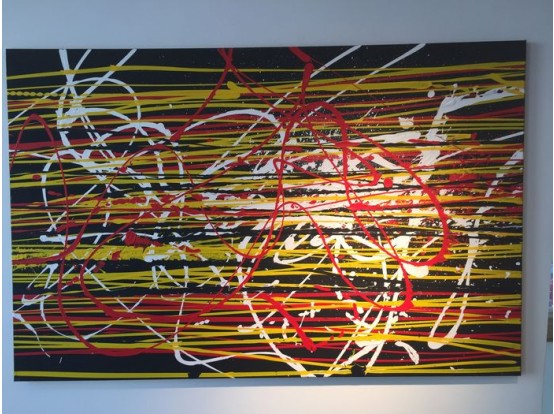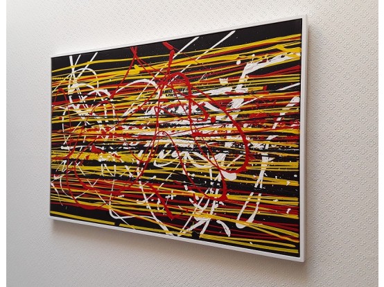 Painting from the series "The contemporary movement compositions" by the Amsterdam artist Rick Triest. The technique is very thick applied acrylic paint on canvas, stretched on a wooden frame. Framed in a handmade white frame. The work was made in 2016 and is signed by the artist. I have obtained the work directly from Rick Triest.