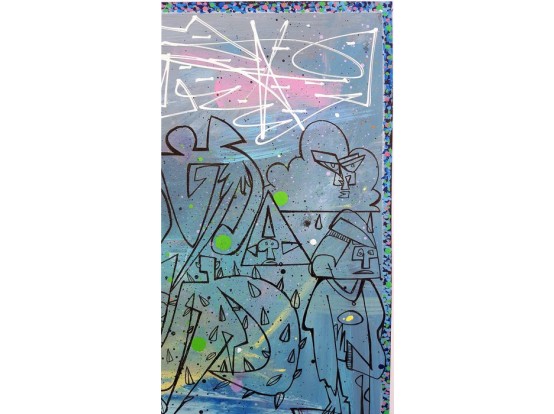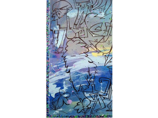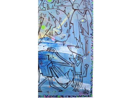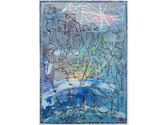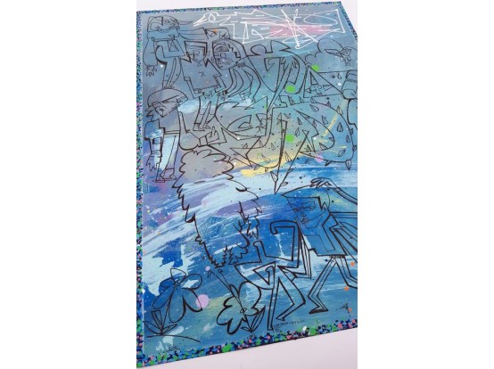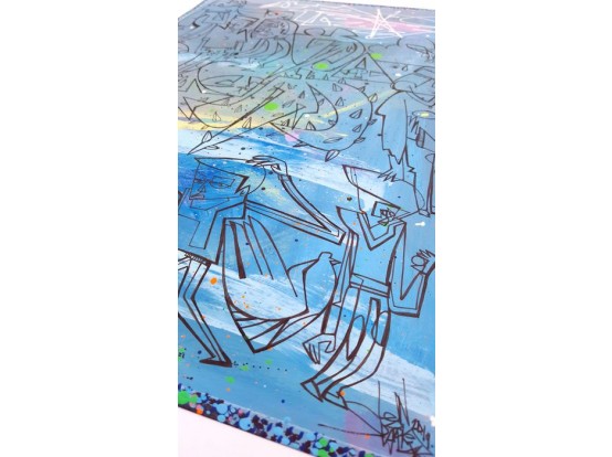 Recent work (2019) in mixed media by the Englishman Leon Sparkes. Watercolor on paper with hand-drawn characters.