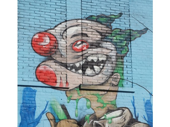 Commissioned by Rewriters010, graffiti artists from the American art collective The Bushwick Collective made murals on a demolished building on the Boezemstraat in Rotterdam. Some members of this collective are among the best-known street artists of contemporary art.