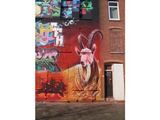 Commissioned by Rewriters010, graffiti artists from the American art collective The Bushwick Collective made murals on a demolition building on Rotterdam's Boezemstraat. Some members of this collective are among the first street artists of contemporary art.