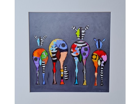 The print is 29 x 29 cm, mounted on 1 mm polystyrene and comes with a mat. It measures 40 x 40 cm. We can also frame the work. Please schedule an appointment at our gallery/framing shop.