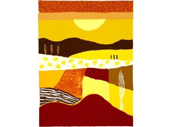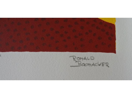Gesigneerde zeefdruk van Ronald Boonacker. Afgedrukt op 250 grams zuurvrij papier. Rood pigment en voorzien van 22 krt goud. Genummerde versie iV uit een serie van XX. Afmetingen van het beeld zijn 40 x 30 cm.