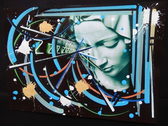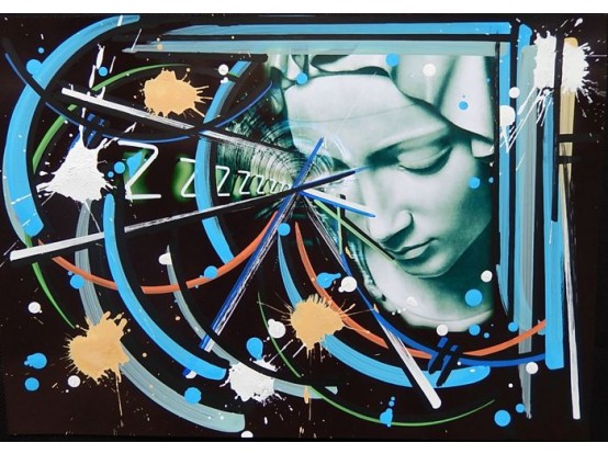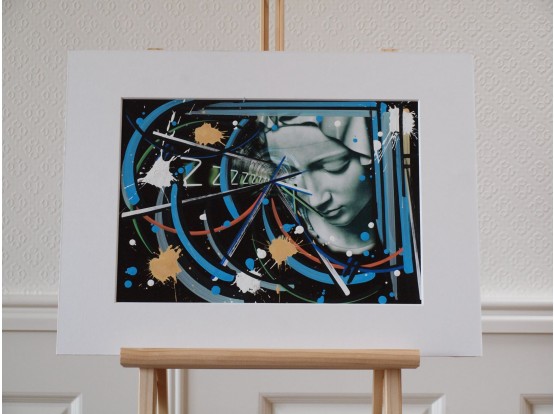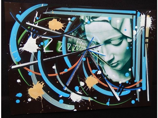 Mixed media work by the French Street artist ENIGME09. Mixed technique of acrylic paint and gouache on photo, made in 2018.