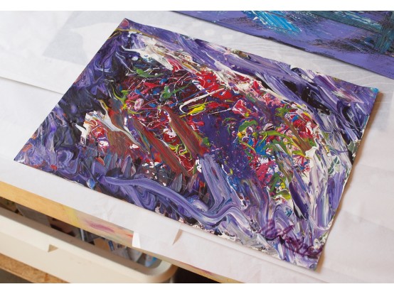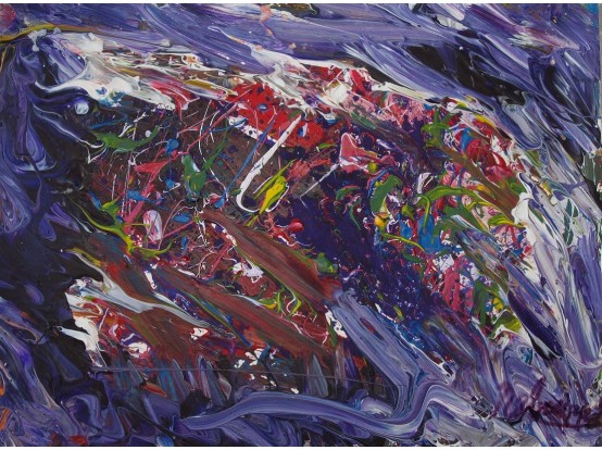 Kleiner werk van Rebourgeard, gemaakt in 2016. Acrylverf op dik papier, gesigneerd.