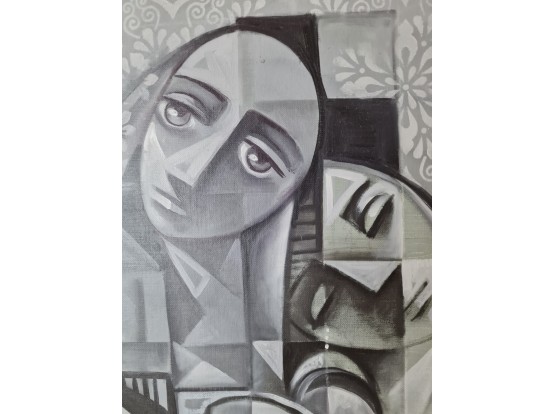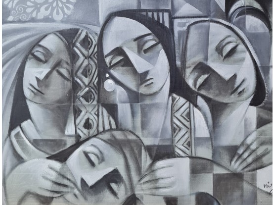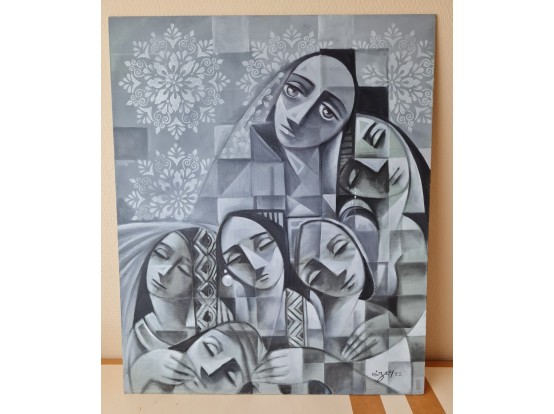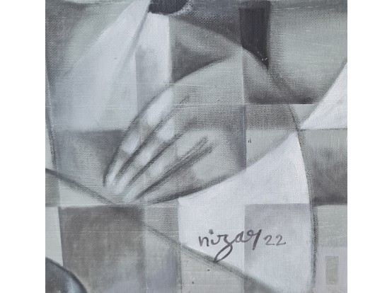 Beautiful original work by the Syrian artist Nizar Al Hattab (1969). Oil paint on a painting panel of 50 x 60 cm. You have to see the different shades of gray with your own eyes. We invite you to view the work by appointment.