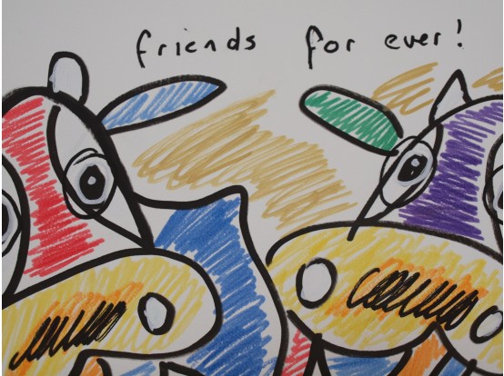 Originele viltstifttekening uit 2016 van de Amsterdamse kunstenaar Fabian (1968). Hij verwierf bekendheid door zijn samenwerking met Herman Brood. Unicum, gesigneerd rechtsonder.