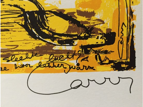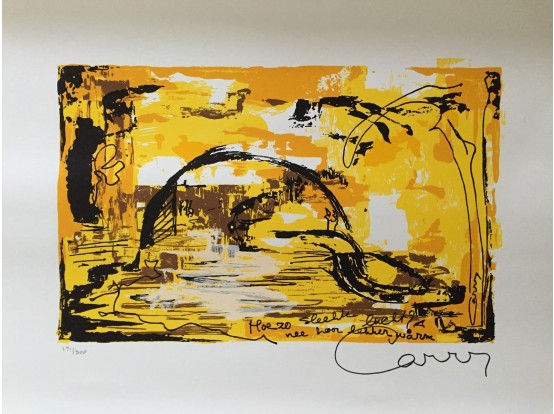Mooie grote zeefdruk van de bekende Nederlandse actrice Carry Tefsen. Na haar carriere als "Mien Dobbelsteen" heeft zij de schilderkunst ontdekt. Ingelijst en voorzien van een ophangsysteem. Kan dus zo aan de muur.