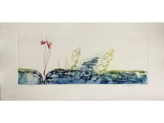 Kleurenets van de Nederlandse kunstenaar Olivier Beijn. De ets is in perfecte staat en nog nooit ingelijst geweest. Formaat afbeelding is 18,5 x 49,5 cm. De ets is genummerd (26 van 30) en ondertekend door de kunstenaar.