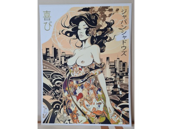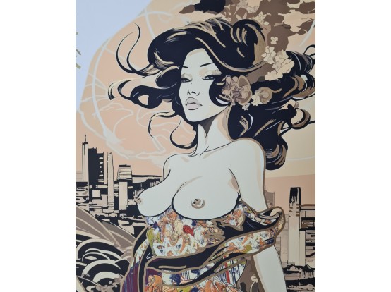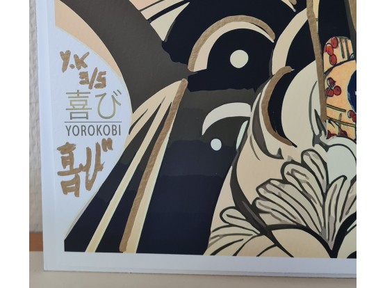 Large colorful giclée made in 2023 by the French artist Yorokobi. The work is signed by the artist. The giclée is hand-painted with spray paint and therefore unique.