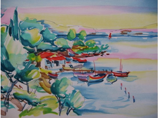Lithograph signed and numbered by the artist. Zlatku is of Macedonian descent and has lived in St. Raphael for years. The work is in good condition and has never been framed. Image itself is 21 x 30 cm.