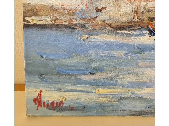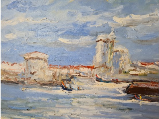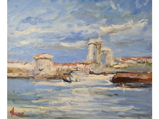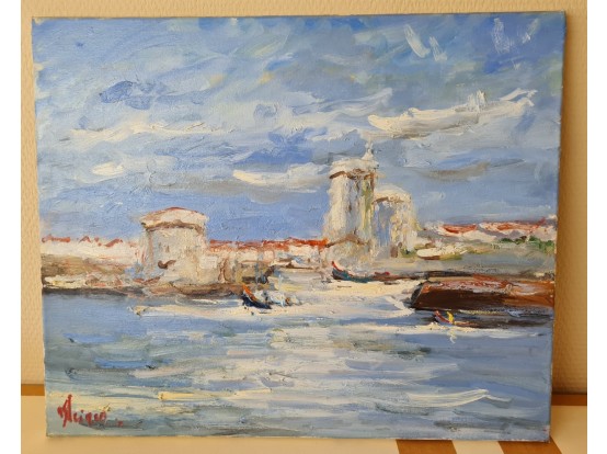 "La Rochelle" by the French painter Dominique Kleiner. Made in 2023 and signed bottom left. Oil on canvas and stretched on a wooden stretcher frame.