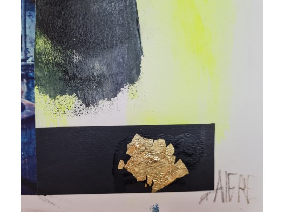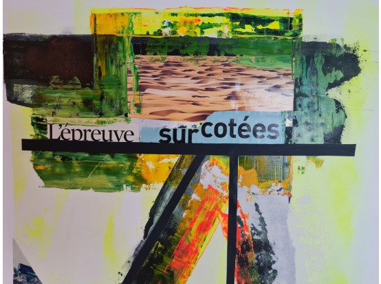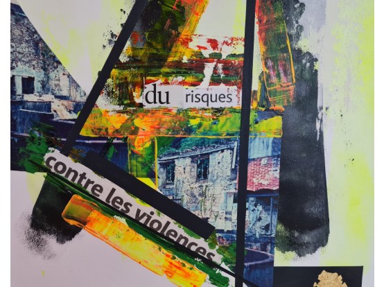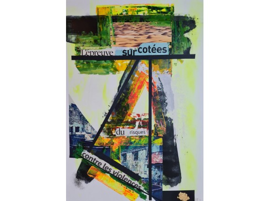 Beautiful work from a series of 6 abstract compositions by this famous French artist. The work was made in 2014 and signed at the bottom right. It is a combination of a collage with acrylic paint. Unique work measuring 48 x 69 cm.