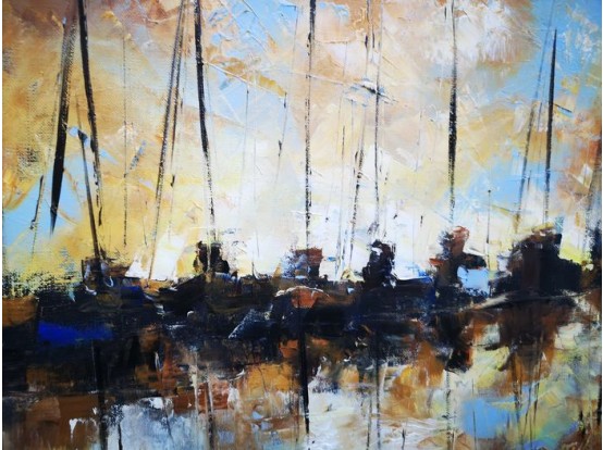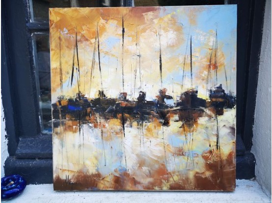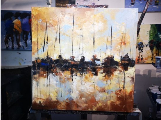 Beautiful oil painting on canvas. Made in 2020 and signed by the French artist Dominique Kleiner. Kleiner's works are distinguished by the use of a spatula and the variety of colors. He makes many of his paintings on the coast of Normandy and Brittany.