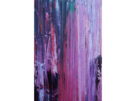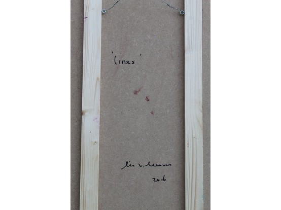 Olieverf op mdf. Kan dus zo aan de muur, geen lijst nodig. De lijnen zijn ingekerfd in de plaat zodat er relief ontstaat. Een techniek waar de kunstenares veelvuldig gebruik van maakt. Werk uit 2016.