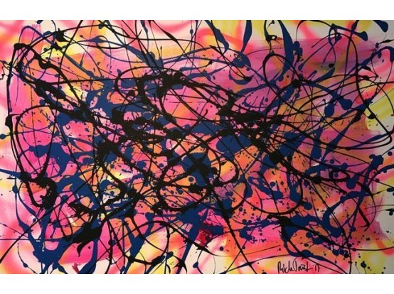 Het schilderij maakt onderdeel uit van "The modern movement compositions" een recente reeks van abstracte schilderijen in vele kleuren.