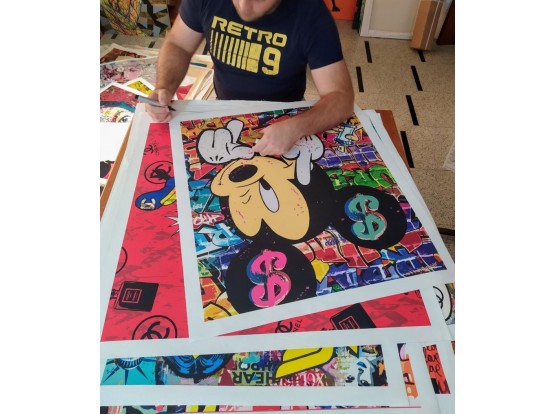 A colourful giclée on canvas from 2022 by the Spanish artist Alberto Ricardo. It is copy 8 from a limited edition of 10 pieces. Signed by the artist on both the front and back. Stretched on a stretcher.