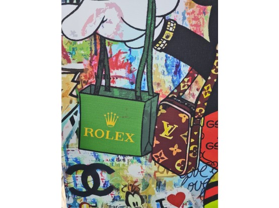 Colourful 2022 giclee by Spanish artist Alberto Ricardo. The 70 x 70 cm giclee is printed on canvas and stretched on a wooden stretcher. Signed on the front and back.