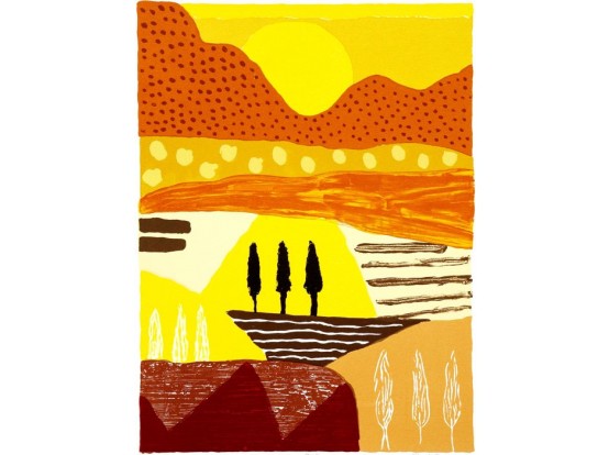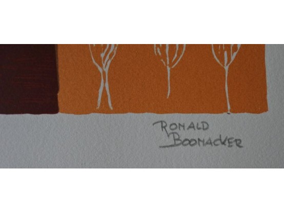 Gesigneerde zeefdruk van Ronald Boonacker. Afgedrukt op 250 grams zuurvrij papier. Rood pigment en voorzien van 22 krt goud. Genummerde versie iV uit een serie van XX. Afmetingen van het beeld zijn 40 x 30 cm.