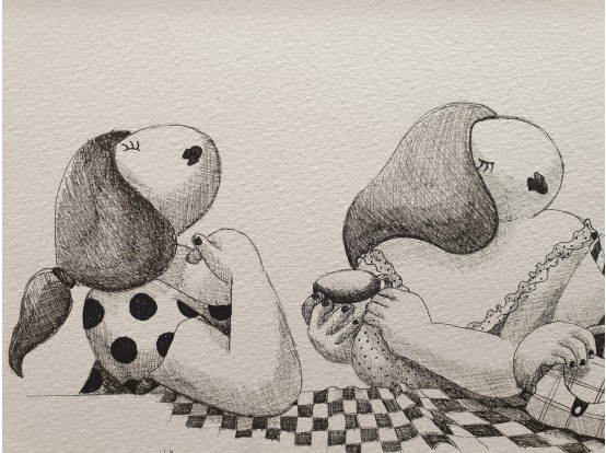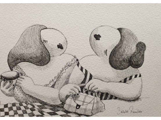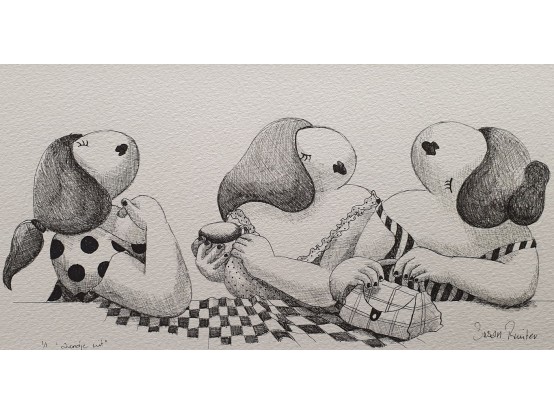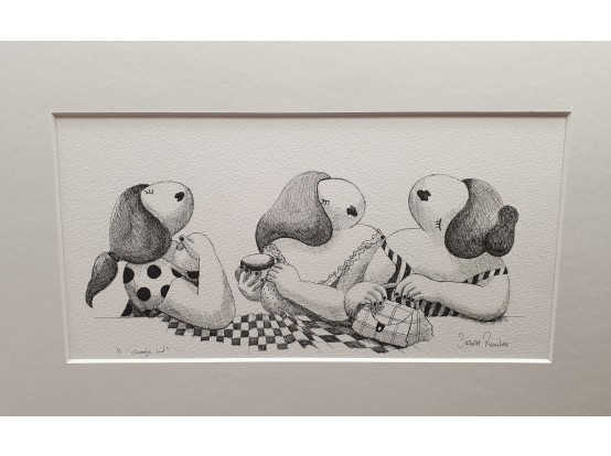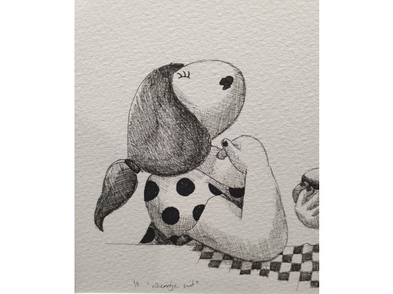 Screen print by Susan Ruiter in simple black / white. Cheerful work on thick paper, with a fitting partout. The dimensions are 46 x 31, including the passe-partout. The print itself is 32 x 16 cm.