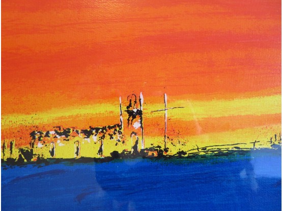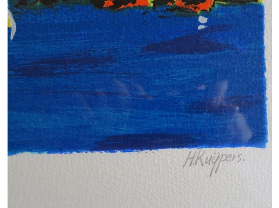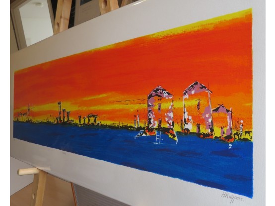 Colourful screen print by Henk Kuijpers, in mint condition. It is a signed and numbered version (number 25) of a limited edition of 150 copies. The image measures 100x28 cm and the sheet 121x44 cm.