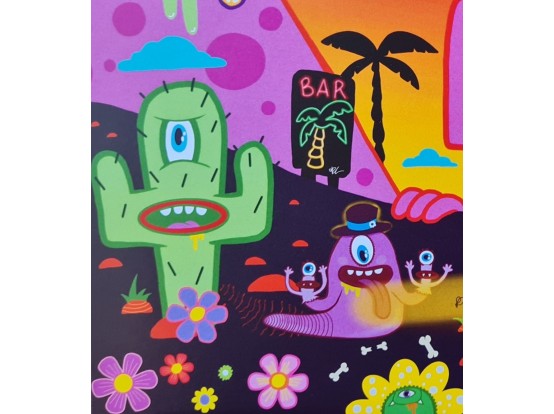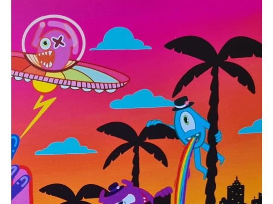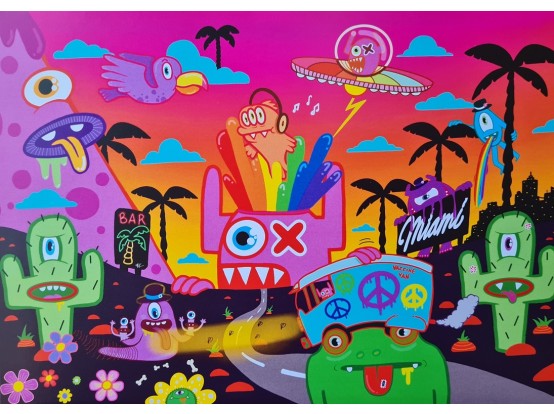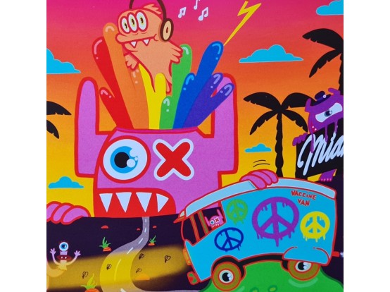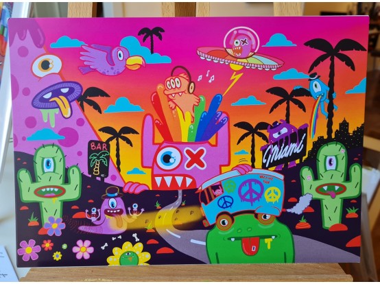 Artprint by the well-known Rotterdam graffiti artist Ox Alien. Colorful work in format 29.7x21 (A4 format). Is already glued on 1 mm polystyrene and is therefore easy to frame. Do you want Art and Color to do that for you? Please and contact us for a quote before ordering.