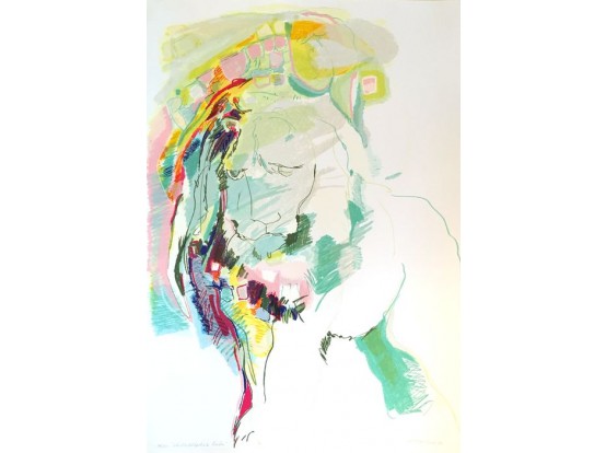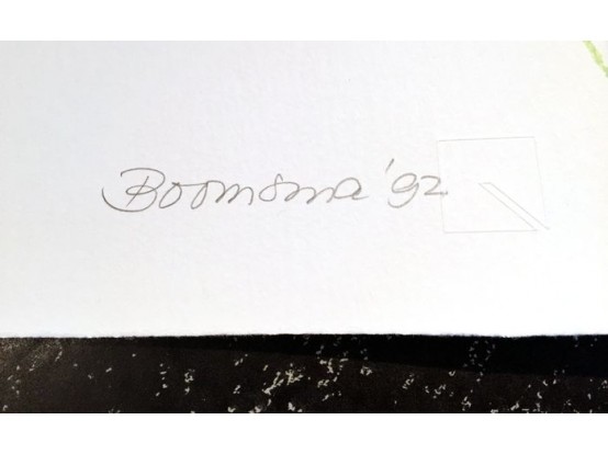 Gesigneerde en genummerde zeefdruk (nummer 73 uit een oplage van 100). Bewerkelijk stuk met 22 drukgangen. Gemaakt in 1992 door meesterzeefdrukker Wout van der Vet uit Zoetermeer.