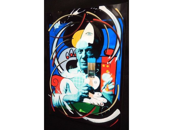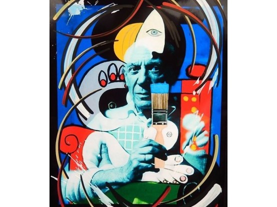 Mixed media work by the French street artist ENIGME09. Mixed technique of acrylic paint and gouache on photo, made in 2018.