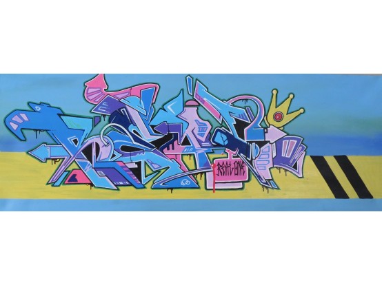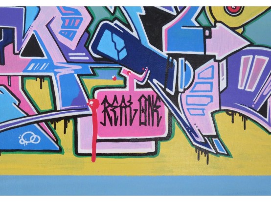 Spray paint on canvas from 2017 by the English graffiti artist Real1. The work has no title and comes directly from Real1. Provided with a certificate of authenticity.