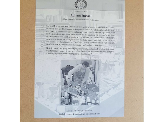 Characteristic painting from the turn of the century. Oil on a wooden panel. Comes straight from Van Hassel's studio. The painting is 28x28cm and including frame 43x43cm.