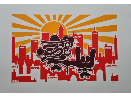 The screen print measures 50 x 65 cm and is printed in 3 colours. I received the work directly from Ces53 with which I guarantee the authenticity.