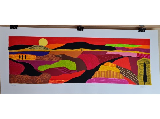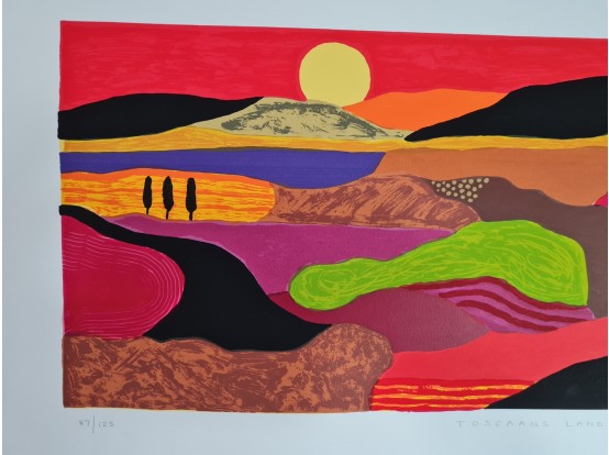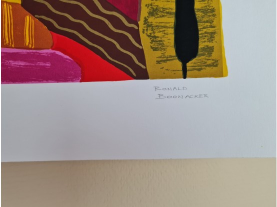Signed silkscreen by Ronald Boonacker. Printed on 250 gram acid-free paper. Number 87 from a limited edition of 125. The dimensions of the image are 30 x 90 cm. Including the frame, the dimensions are 40 x 100 cm. We will be happy to provide the silkscreen with a suitable frame after ordering. We will contact you directly about this.