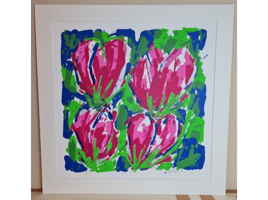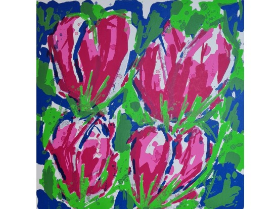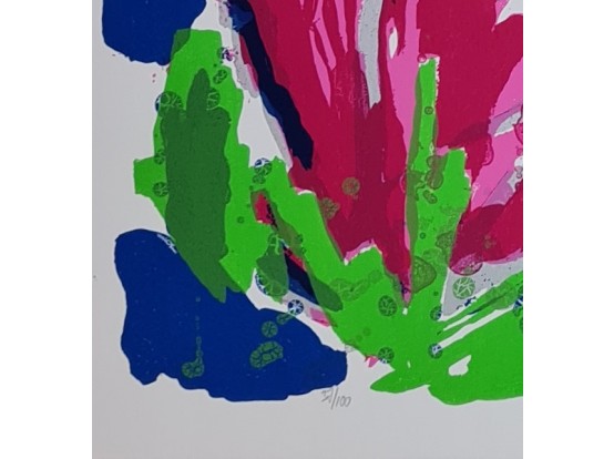 Characteristic screen print from 2002 by Ad van Hassel. The image is 70x70cm and the sheet 90x90cm. It is number 37 from a limited edition of 100 and signed by the artist.
