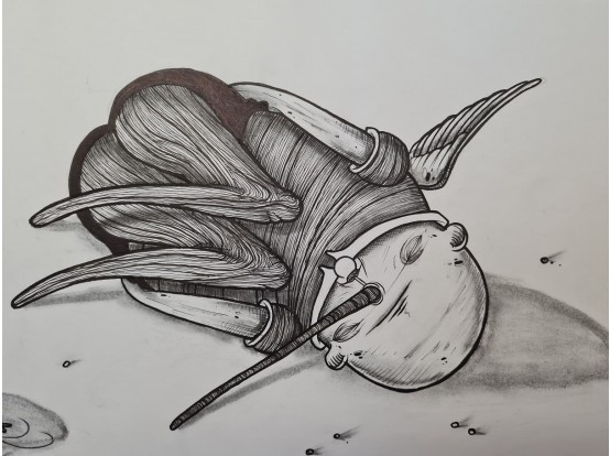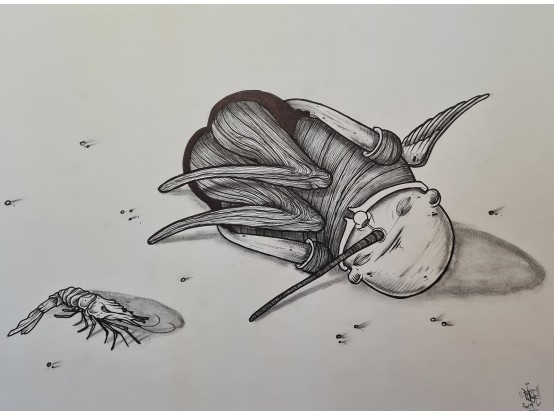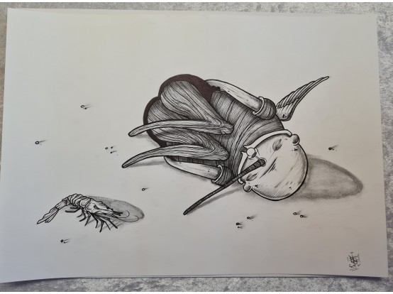 Characteristic drawing in charcoal and pencil by the Belgian artist Bart Bosmans (aka B-art). Dates from 2019 and is signed.