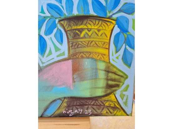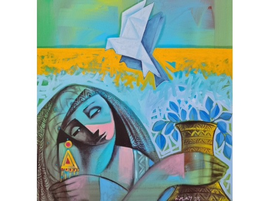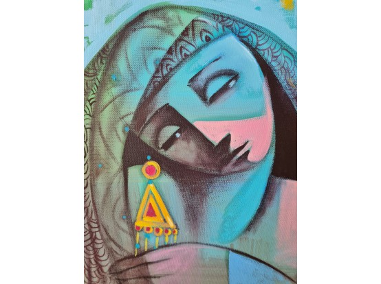 Nizar Alhattab's style is characterized by colorful images of female figures in the clothing of his homeland Syria. In reality, the colors speak even more than in the photos. Come and see his canvases for yourself in our gallery in Gouda.