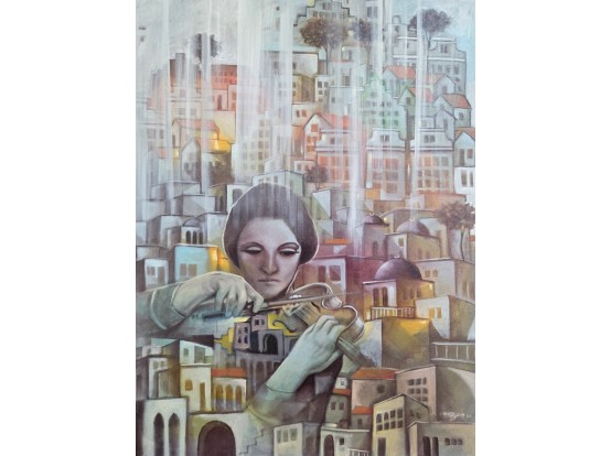 Painting by Syrian artist Nizar Alhattab. The 60 x 80 cm canvas is stretched on a wooden stretcher frame. Created with oil paint in December 2022 in Gouda.