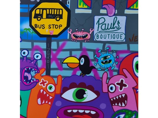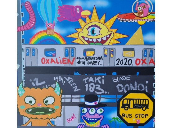 Artprint by the well-known Rotterdam graffiti artist Ox Alien. Colourful work in 50x40 format. Is already glued on 1 mm polystyrene and is therefore easy to frame. Do you want Art and Color to do that for you? Please and contact us for a quote before ordering.