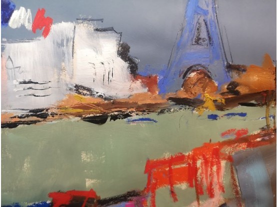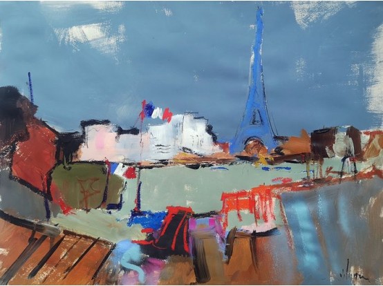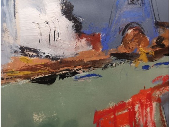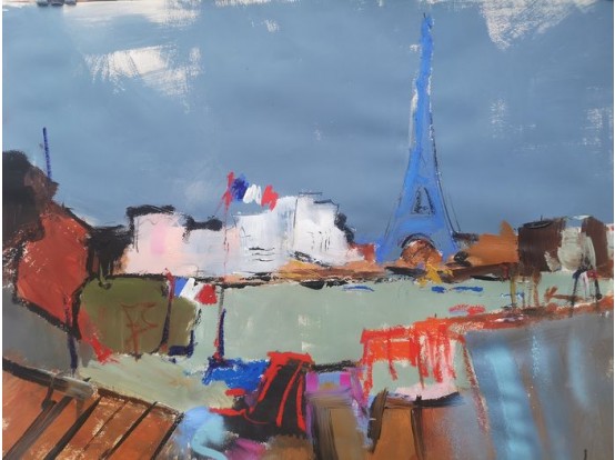 Uniek schilderij van Dominique in een techniek die hij niet vaak gebruikt, namelijk acrylverf op papier. Voor aflevering van het schilderij plakken wij het op een zuurvrije ondergrond zodat strakke presentatie in een lijst mogelijk is.