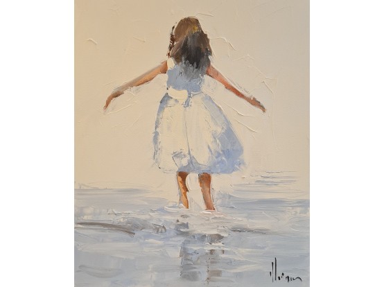 Recent werk (2021) van de Franse kunstenaar Dominique Kleiner. Het is een olieverfwerk op doek, gespannen op een houten spieraam. Verf is aangebracht met een paletmes. Dominique Kleiner woont in Fécamp (F) en is vaak met zijn ezel te vinden aan de boulevards en stranden van Bretagne en Normandië.