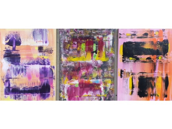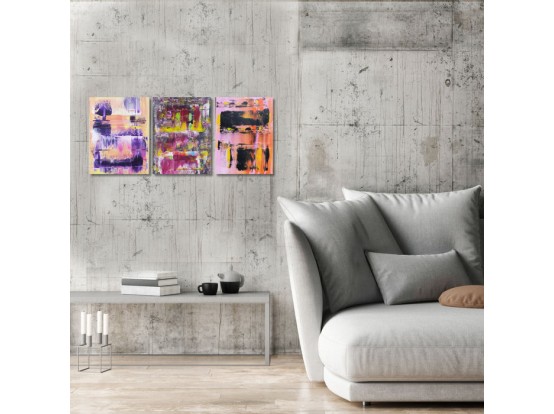 Mooi drieluik van de Duitse kunstenaar Parscha Mirghawameddin. De doeken zijn gemaakt in 2018 en komen rechtstreeks van de kunstenaar. Techniek is acrylverf op doek, gespannen op een houten frame. Een lijst is niet nodig. De afmetingen zijn 3 x 40 x 30 cm, totaal dus 40 x 90 cm.