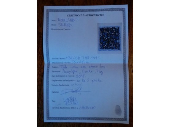Schilderij in mixed media (acrylverf en inkt op doek) van de Franse kunstenaar Roulland T (aka SKRED). Het werk komt rechtstreeks van de kunstenaar en is gemaakt en gesigneerd (linksonder) in 2016. Wordt geleverd met een certificaat van echtheid, afgegeven door Roulland T.