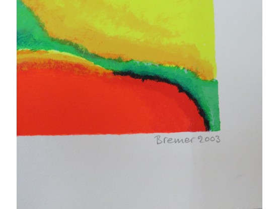 Zeer kleurrijke zeefdruk van de bekende nederlandse kunstenares Saskia Bremer met een zeer eigen stijl. Het werk is in 2003 gemaakt in een serie van 180 oplagen. Dit is nummer 161, gesigneerd door de kunstenares.