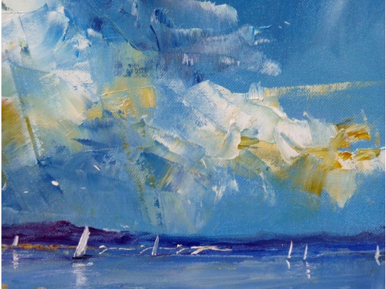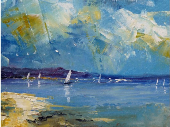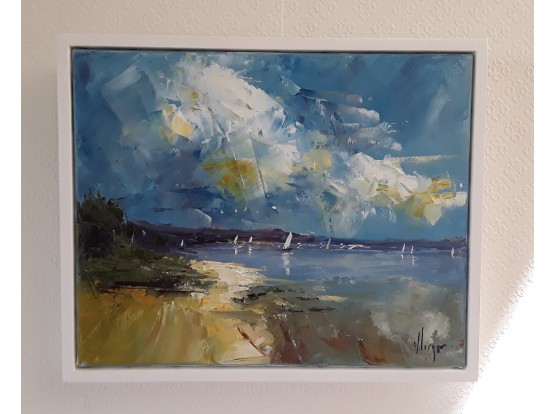 Recent werk (2017) van de Franse kunstenaar Dominique Kleiner. Het is een olieverfwerk op doek, gespannen op een houten lijst. Verf is aangebracht met een paletmes. Dominique Kleiner woont in Fécamp (F) en is vaak met zijn ezel te vinden aan de boulevards en stranden van Bretagne en Normandië.