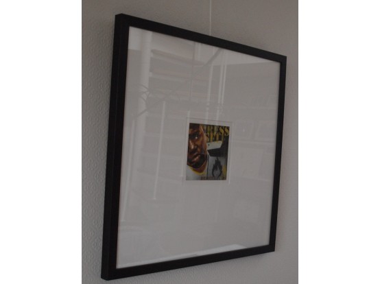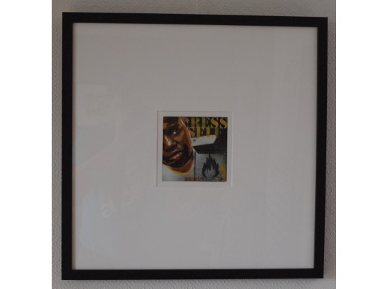Unieke afbeelding (13 x 13 cm) van spuitverf op karton. Het werkt dateert uit 2015 en is door de kunstenaar gesigneerd. Mooi ingelijst in een houten zwarte lijst en voorzien van passepartout.