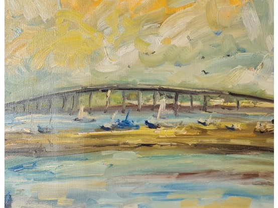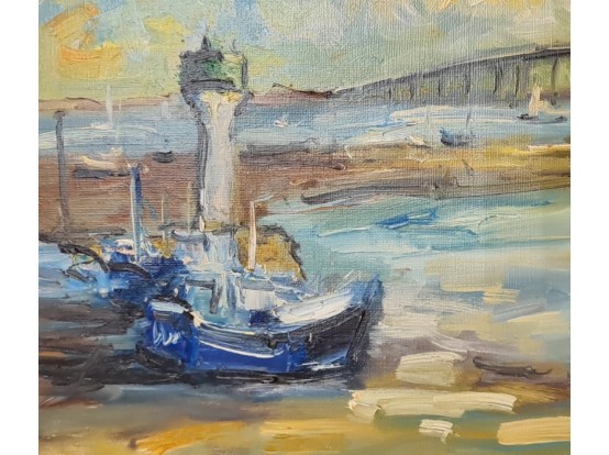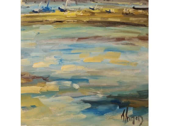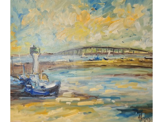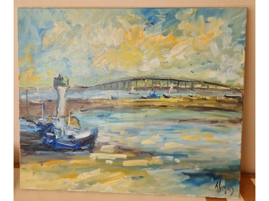 "Ile de Ré" van de Franse schilder Dominique Kleiner. Gemaakt in 2023 en gesigneerd linksonder. Olieverf op doek en gespannen op een houten raam.