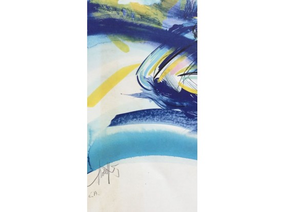 Originele kleur lithografie. De litho is zonder marges dus bestrijkt het hele blad. Getekend in potlood met de hand door de kunstenaar + in de plaat ondertekend. In zeer goede staat. Uit de serie L'Oeuvre poétique, Jacques Brel. De afbeelding bedraagt 43 x 32 cm in een lijst van 50 x 40 cm.