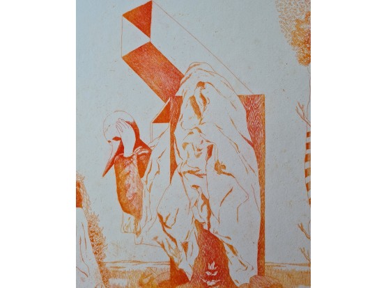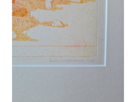 Kleurenets uit 1975 van de Belgische kunstenaar Marc Vanderleenen (Mechelen, 1954). Nummer 39 uit een beperkte oplage van 40 stuks. Rechtsonder in potlood gesigneerd.