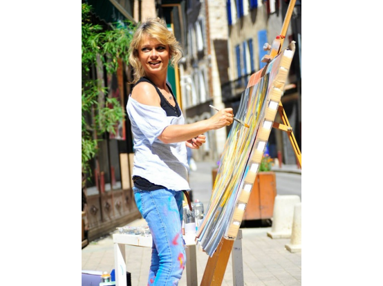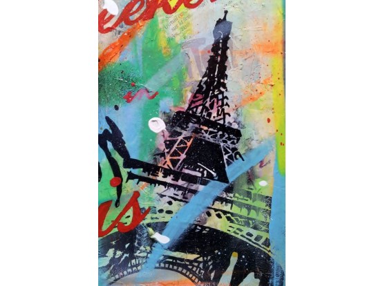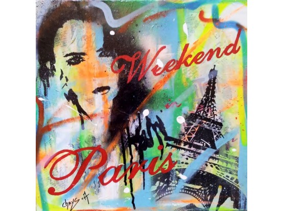 Kleurrijk werk van de Zuid-Franse kunstenares Christine Tronquoy. Ze werkt onder de e naam Chrys A. en heeft een kenmerkende stijl van vrolijke en kleurrijke werken. Het werk is met gemengde technieken gemaakt op canvas en gespannen op een frame van 1 centimeter dik. Kan zo aan de muur maar komt het beste tot zijn recht met een grote stoere lijst. Het doek is rechtstreeks van de artieste aangekocht en is voorzien van een certificaat van echtheid.